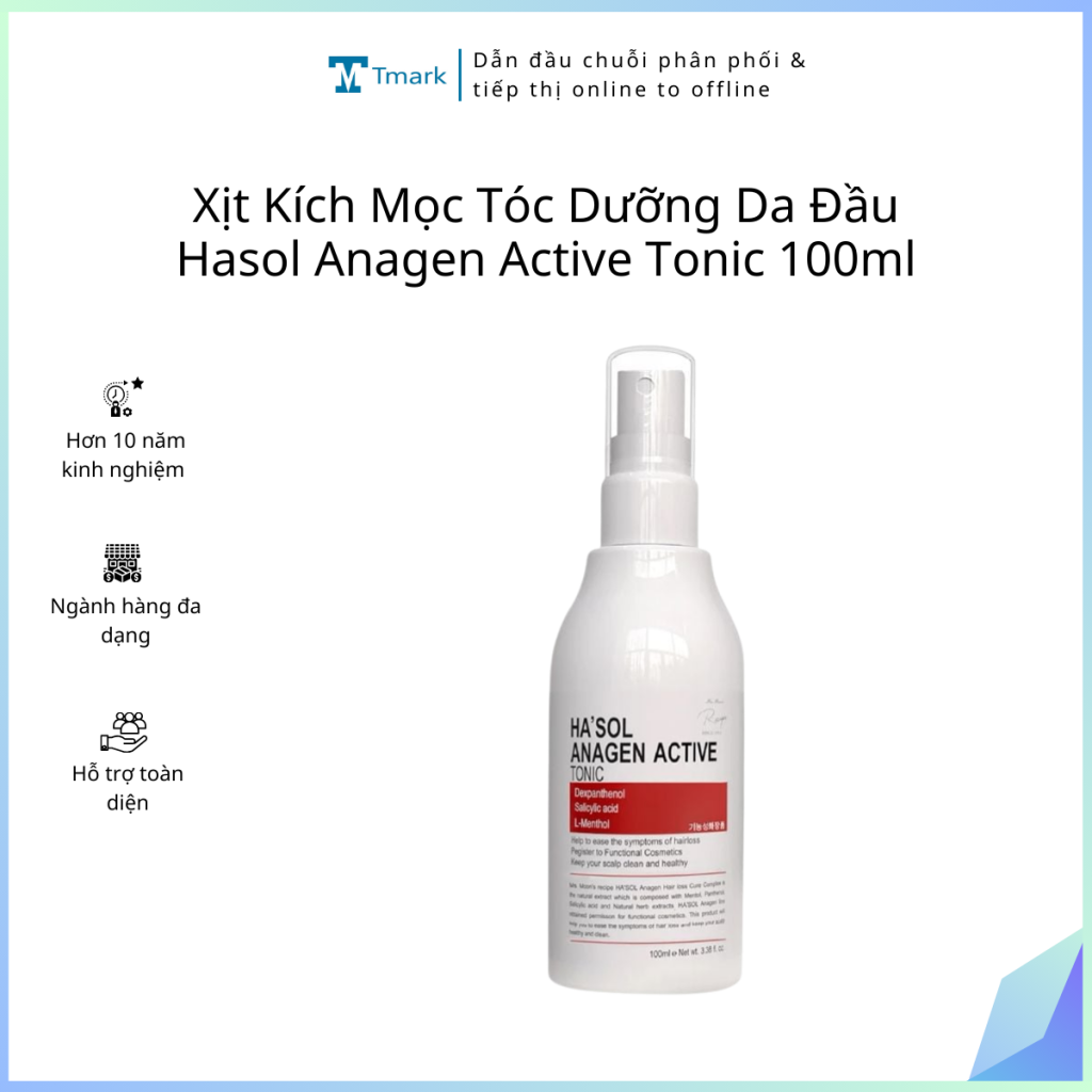 Xịt Kích Mọc Tóc Dưỡng Da Đầu Nuôi Dưỡng Nang Tóc Chắc Khỏe Dành Cho Tóc Rụng Mỏng Yếu Hasol Anagen Active Tonic 100ml