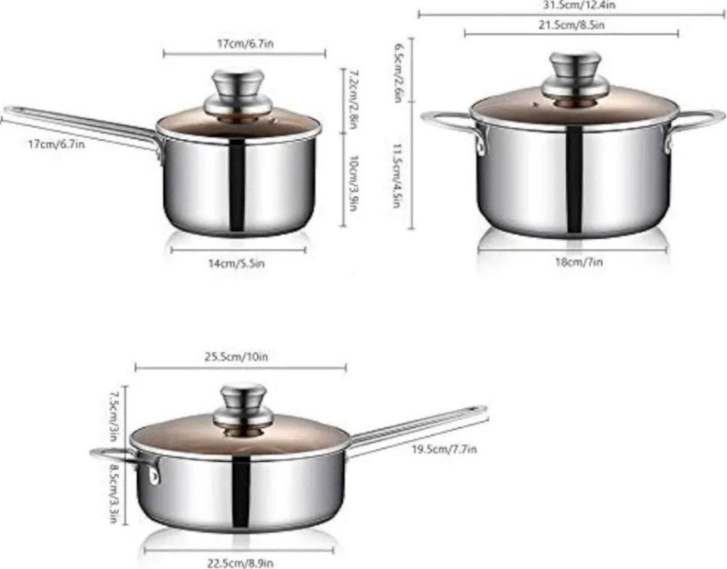 combo 2 nồi và 1 chảo inox Engelberg Tmark (Kiện 12 bộ)
