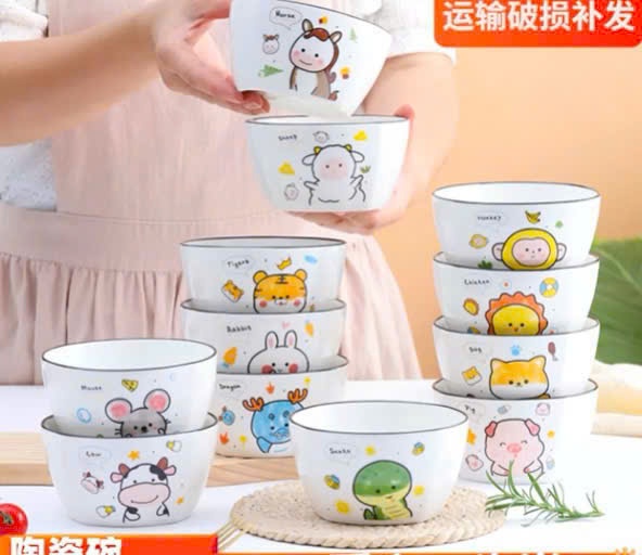 Chén sứ 12 con giáp ngẫu nhiên ngộ nghĩnh Tmark (Kiện 54 cái)(Hàng nguyên kiện)