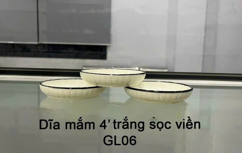 Dĩa mắm 4″ trắng viền đen sang trọng, tinh tế Tmark