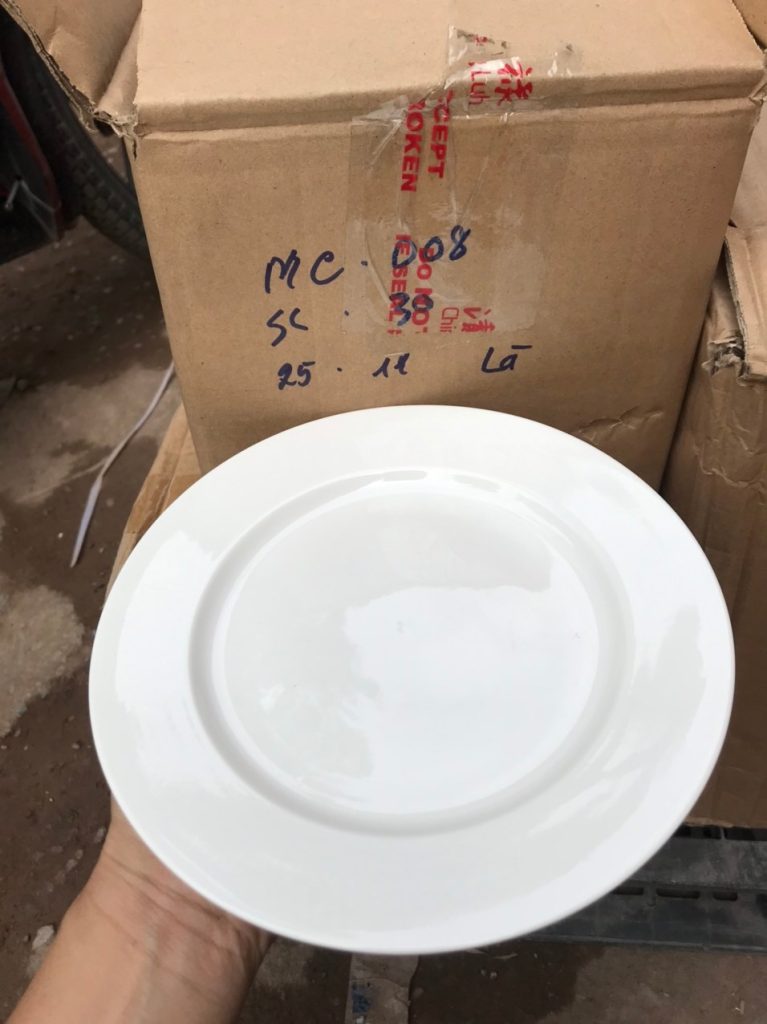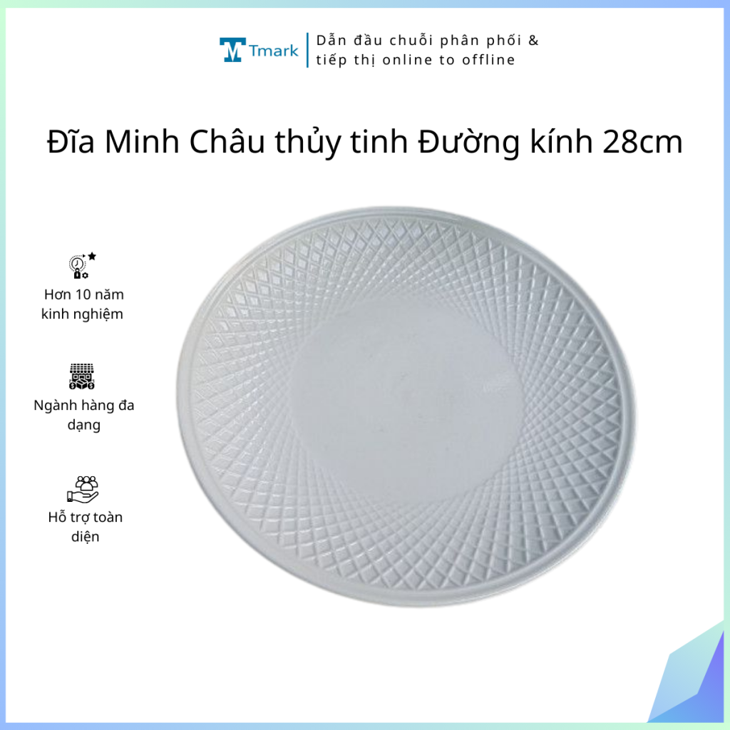 Đĩa Minh Châu thủy tinh Đường kính 28cm Tmark – Sứ cao cấp, trắng mịn, an toàn sức khỏe (Kiện 100 cái)