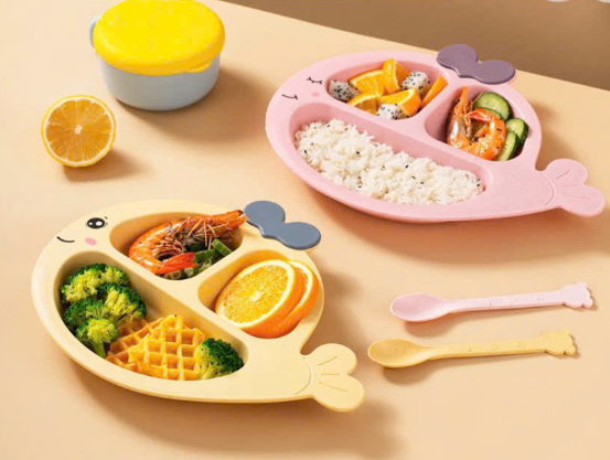 Đĩa ăn dặm cá voi nhựa PP 3 ngăn kèm muỗng Tmark (Kiện 120 cái)