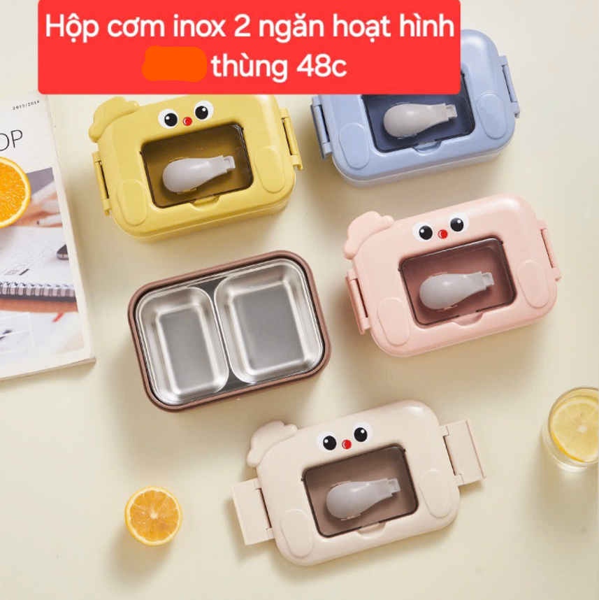 Hộp cơm hoạt hình inox 2 ngăn kèm thìa Tmark (Kiện 48 cái)