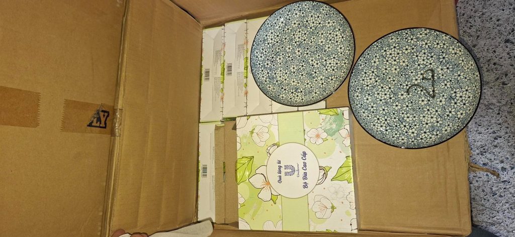 Hộp 2 dĩa gốm sứ tráng men hoa văn 20 cm Tmark (Kiện 18 hộp) (Hàng nguyên kiện)
