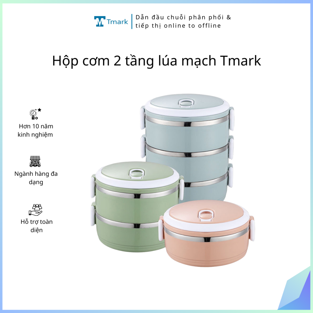 Hộp cơm 2 tầng lúa mạch Tmark (Kiện 48 bộ)