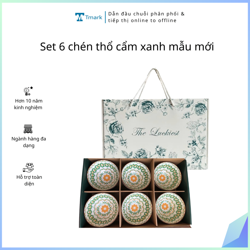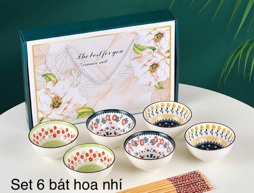 Set 6 chén sứ nón thổ cẩm hoa siêu hot Tmark (Kiện 12 bộ) (Hàng nguyên kiện)