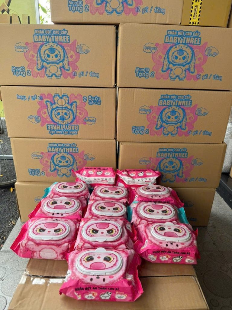 Thùng 12 gói khăn ướt cao cấp Baby Three