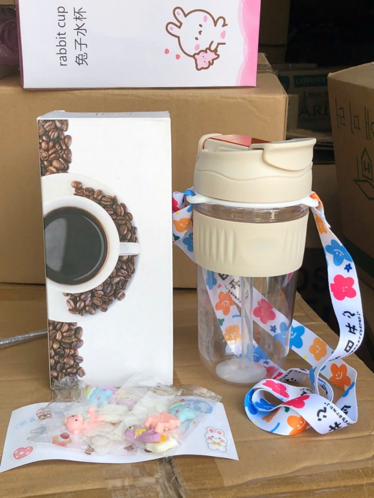 Bình đựng nước có dây đeo kèm sticker (Kiện 50 cái)