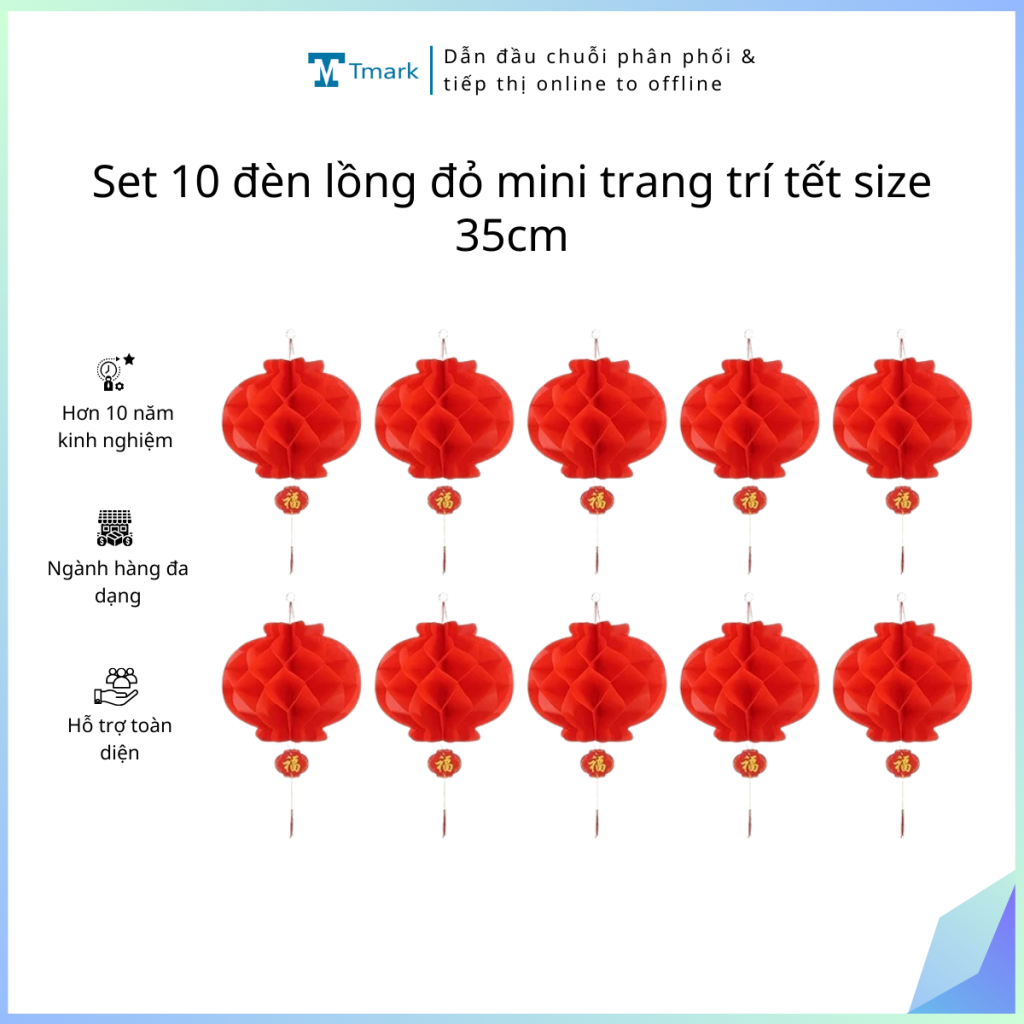Set 10 đèn lồng đỏ mini trang trí tết size 35cm Tmark (Kiện 100 set)(Hàng nguyên kiện)