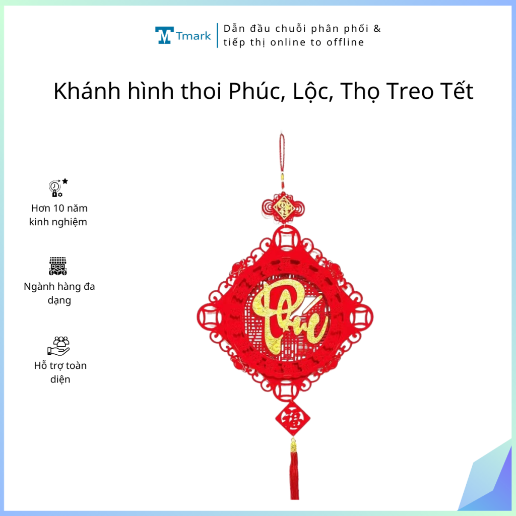 Khánh hình thoi Phúc, Lộc, Thọ Treo Tết Tmark ( Kiện 300 cái)